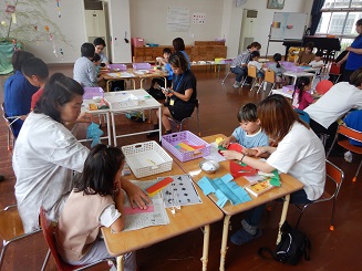 本日は七夕親子製作を行いました。少し難しいものも、お家の人と一緒につくることで、楽しくつくることができました。綺麗な飾りが、たくさんできて嬉しい子どもたちです。