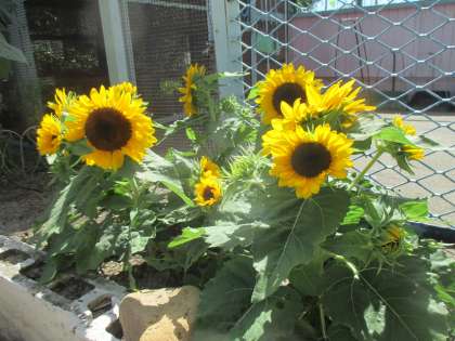 背丈の低い、とってもかわいいヒマワリが咲いています。