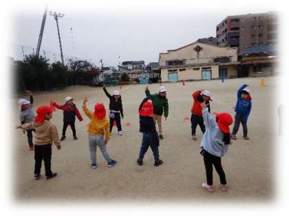 毎朝のマラソンは、走ることだけでなく、道具の準備・みんなの前に出ての体操も年長児として頑張りました。