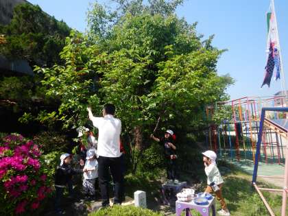 待賢幼稚園の園庭にさくらんぼの木があります。