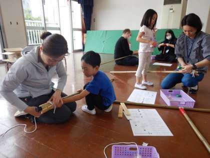 竹馬づくりは簡単ではありませんが、一生懸命につくっている保護者の方の姿を子どもたちは間近に見ることで、大事な竹馬になっていくのだと思います。