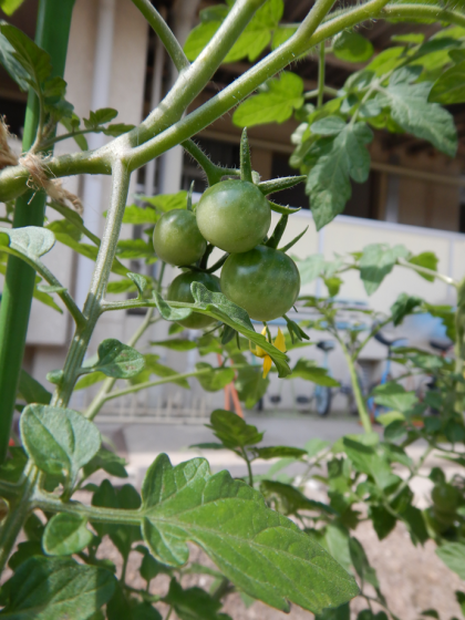 ミニトマト 小さな実が鈴なりです