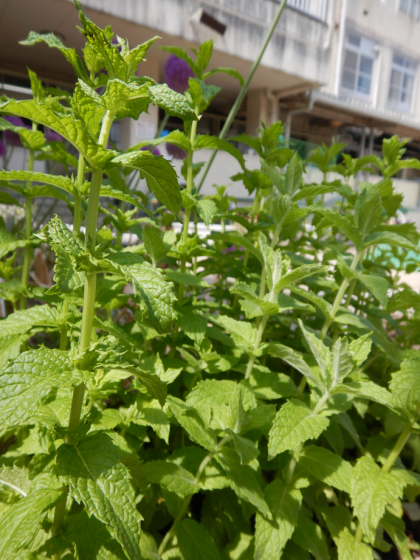 ミント   香りが強く、花の色水遊びにも使っています