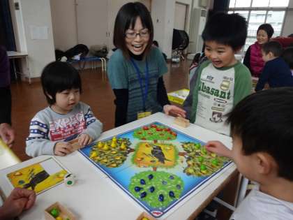 今日の預かり保育は,講師の先生をおまねきして,ボードゲーム等たくさんおもしろいゲームを教えていただきました。保護者の方も興味があるかな?とお誘いすると多くの方が参加してくださって,とても楽しいひと時となりました。2時間があっという間で,本当に楽しかったんだなあと思いました。