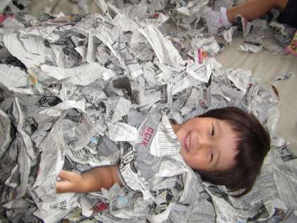 新聞紙で遊んだよ