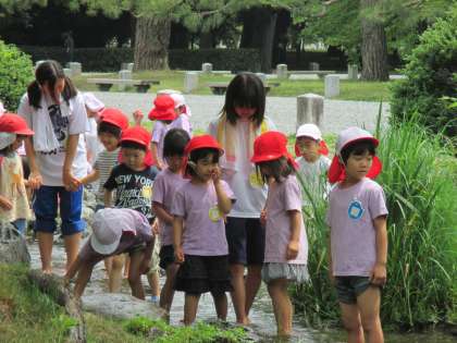 お姉さんたちも一緒に,川遊びを楽しみました。