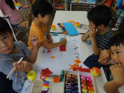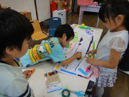 友達のしていることは関係なく,次々に,かきたいことを,かきはじめていったり…,