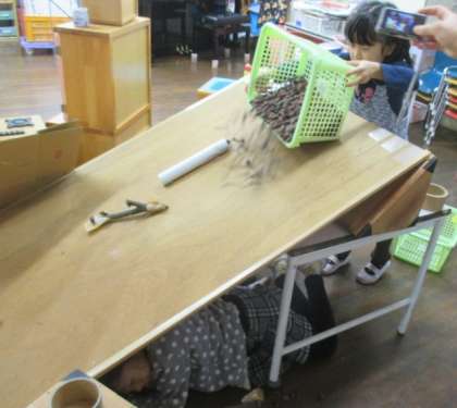 下にもぐって,音を聞いてる子どももいました。