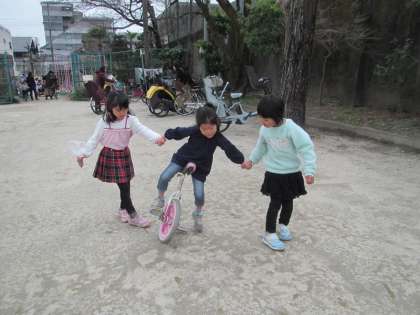 ぴょんぴょん,跳びながら,保育室に戻って行きました。