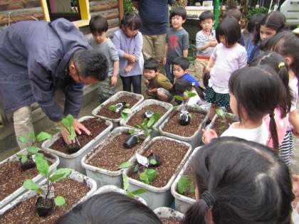 畑の先生:「これから,毎日,お世話していってね」の
