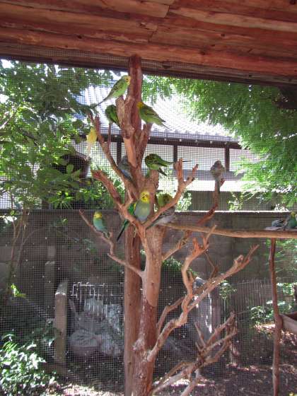 ちゃぼの家族は,うさぎさんや小鳥さんと一緒に大きなお家で暮らしています。それぞれが,居心地の良い,お気に入りの場所で,のんびり過ごしています。エサもお互いのものを食べ合いっこしています。幼稚園のお友達と一緒で,みんな,とってもなかよしです。