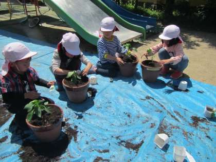すみれ組は、ピーマンを、
