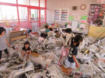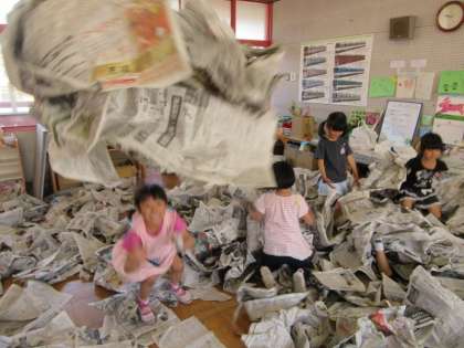 すみれ組も、新聞で遊びました。