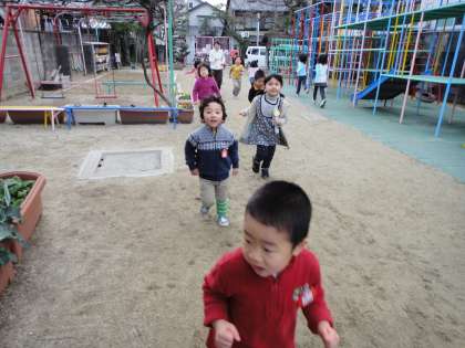 走っているときは寒いですが,体が温まると外遊びも楽しくなります。