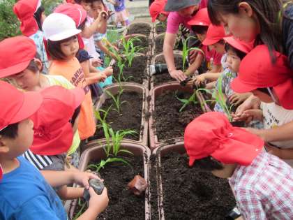 みんなでポップコーンを植えました
