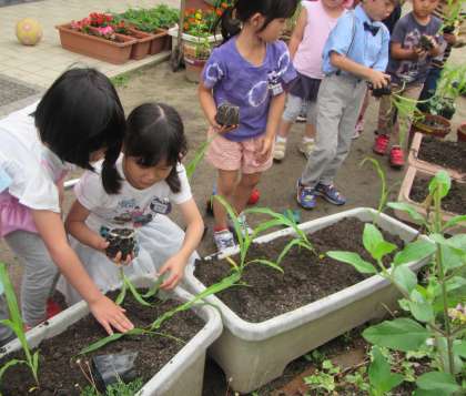 3歳児ちゅうりっぷ組もお水をあげていました。かわいい姿でした。