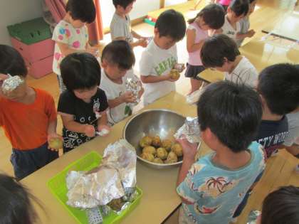 「アルミホイルでむけるの?」と不思議そうに言いながらもこすっていると,