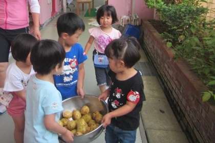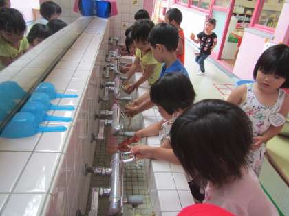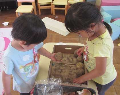 年少児ちゅうりっぷ組は,にんじん,じゃがいも,たまねぎを洗いました。