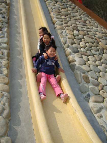 大きな滑り台やブランコ,迷路で汗をかきながら遊びました。