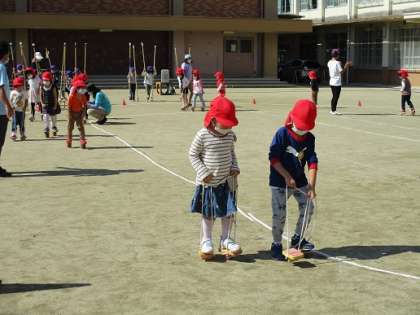 かけっこやリレー,竹こっぽりや一本歯下駄など,