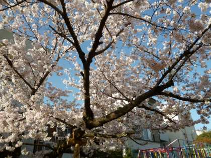 園のサクラが満開になりました。本日の風で桜吹雪が舞っています。いよいよ明日の離任式で今年度の大きな行事も最終になります。