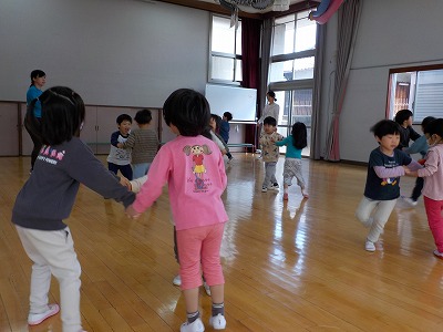 みんなで”手と手をポンポンポン”のなかよし遊びをしました。