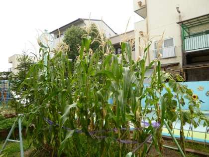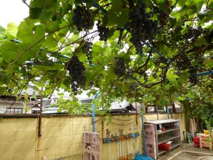 連日危険な暑さが続いています。台風の直撃もありました。皆様いかがお過ごしでしょうか。本当にお見舞い申し上げます。本日より預かり保育が再開されました。子どもたちの声が久しぶりに園内に響いています。写真は、本園のぶどう、ポップコーン、キウイフルーツの様子です。順調に育っていますが、野鳥が狙ってそうなので少し心配しています。