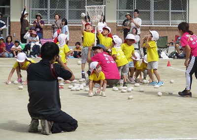 玉入れは子どもたちだけではなく、保護者の皆様とも一緒に楽しみました。