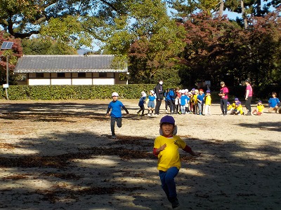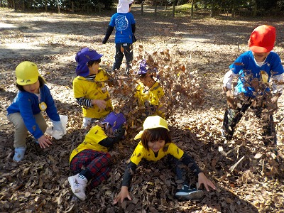 いろいろな道を探して探検したり、翔鸞幼稚園の友達を誘って鬼ごっこをしたり、落ち葉でやきいもごっこをしたり・・・
