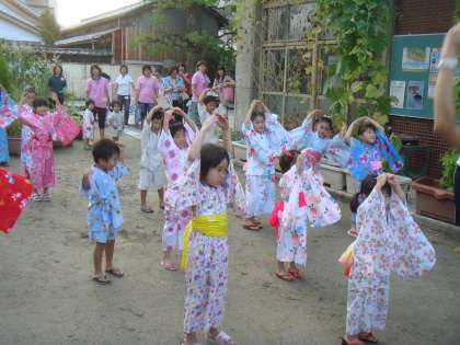 当日の夕方になると浴衣や甚平姿の子どもたちが登園してきました。