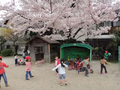 ました。桜の花びらが舞って散っていく様子を見て,子ども達は
