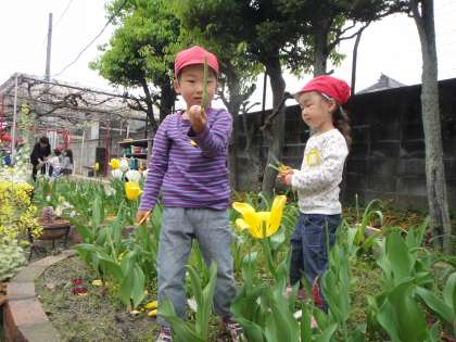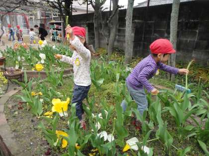花壇のチューリップもしてあげよう!と一緒に切りました。