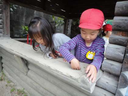 アスパラ屋さんごっこが始まりました。近くで遊んでいた