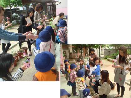 お母さんに渡すときは,少し恥ずかしそうにしている子どももいましたが,お母さんが「ありがとう!嬉しいよ!」「嬉しくて涙が出るよ」「きれいだね」「お家に飾ろうね」と喜んでもらったり,ギュッと抱きしめてもらったりして,子どもたちはとても嬉しそうでした。