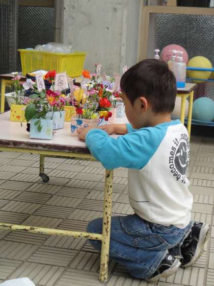 牛乳パックの回りには,お母さんの顔をかきはりました。