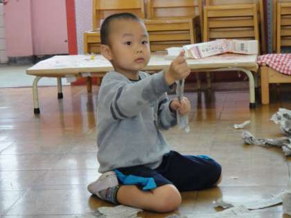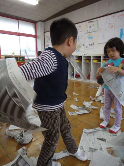 新聞紙で遊んだよ