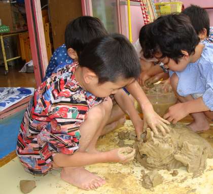 「粘土遊び 大好き!」と子どもたち。
