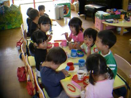 「先生はお母さんにつくってもらうん?」「自分でつくるよ」「へ〜すごいな〜」という子どもたちです。