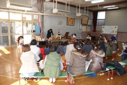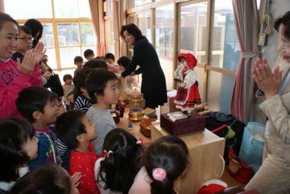 コンサートの後,子どもたちにストリートオルガンのハンドルをまわさせていただいたりもしました。