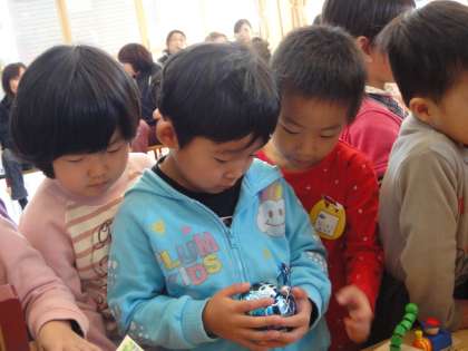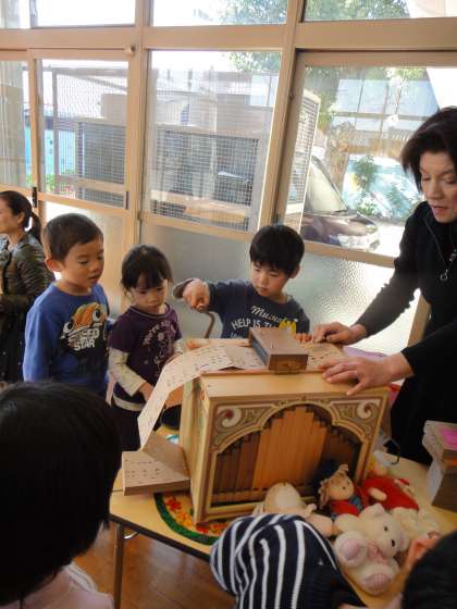 今日は,幼稚園にたくさんのオルゴールをもってきてもらい