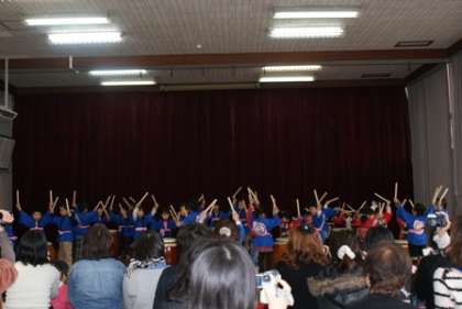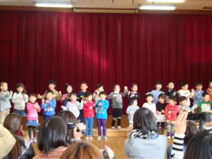 全園児みんなで,「山の音楽会」「だいすき けんりゅうようちえん」の歌を歌いました。そして,最後は和太鼓を演奏しました。