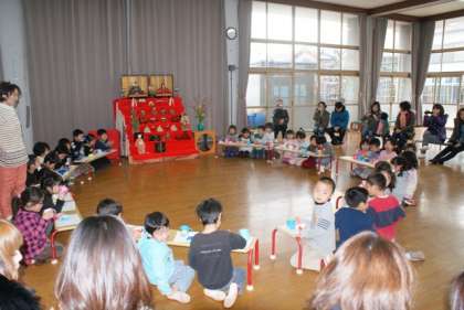 全園児で,「ひなまつりのつどい」を開き,参観していただきました。