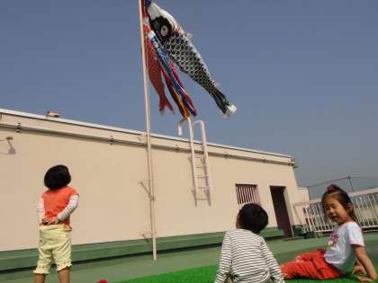 「行こう!行こう!」と,屋上に行き,こいのぼりを見ると