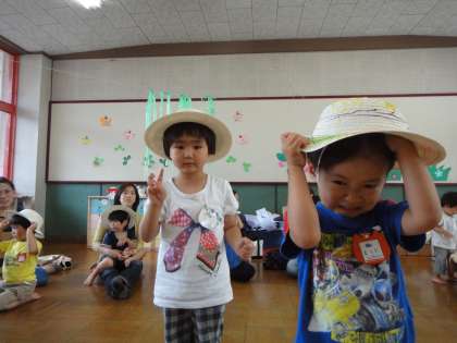 今日から衣替えとなり,年中・年長児の帽子も”麦わら帽子”に変わりました。