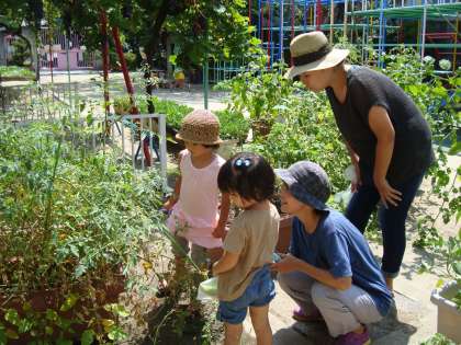 幼稚園の野菜がよく実っています。みなさん,収穫がてら,遊びに来てくださいね。