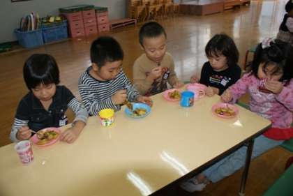 「甘くておいしい」と,初めて大学芋を食べた子どももいました。