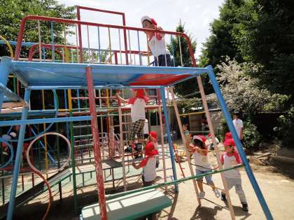 園庭の遊具も初めて見るものもあり,とても魅力的な様子で,思い切り遊ばせていただきました。