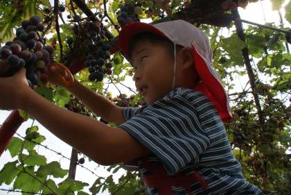 どれにしようかなと,自分でおいしそうなブドウを選んで,とりました。