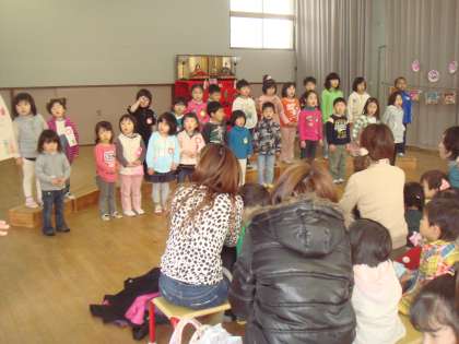 ひなまつりの歌をみんなで歌ったり、ひなまつりのお話を聞いたりしました。