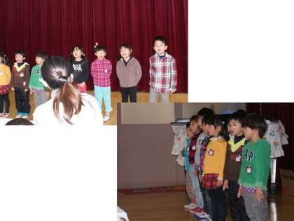会の〆は,年長児の歌。「にじ」の歌を歌いました。子どもたちのお気に入りの歌です。